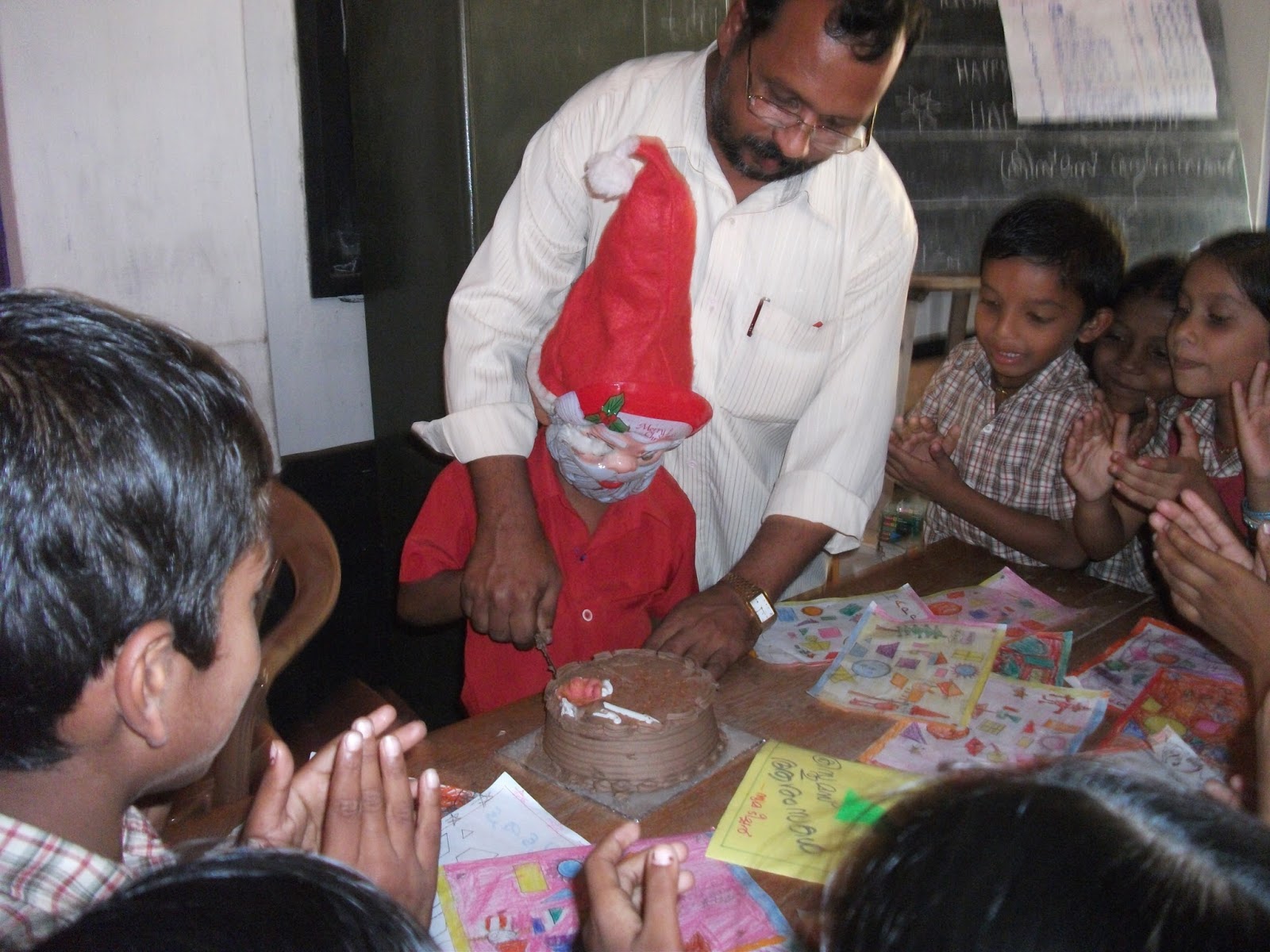 | 'നമുക്ക് ഹാപ്പി ക്രിസ്മസ് പാടാം..ടീച്ചര് കേക്ക് മുറിക്കാന് തുടങ്ങി,ഹാപ്പി..ക്രിസ്..മസ്...' |